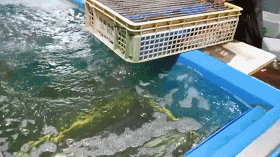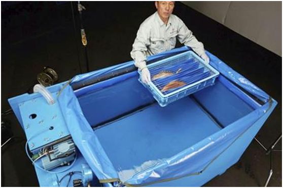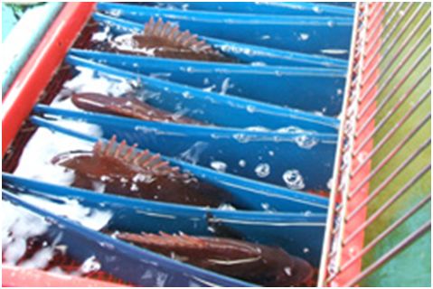 中国水产频道独家报道, 开发水产品的无水运输技术前景广阔 文/水产前沿 李钒 通过使用二氧化碳(CO2)麻醉鱼让其睡着,并可在新鲜状态下运送到远处的“超越鲜度的技术”被开发出来。 据了解,开发出这种技术的是长崎县立大学的久木野宪司教授。通过使用二氧化碳(CO2)麻醉活鱼让其睡着后运输,在不伤害鱼体的情况下进行长途运输变得可能。 目前长途运输活鱼时仍然有几个缺点:运输成本高、水质易恶化、需水(海水)量大(大概是鱼体积的十倍水)、收容率低、鱼容易受伤、运输设备设入大等等。 久木野教授利用假日,在查找有关鱼的麻醉的论文时,了解到没有长时间成功麻醉水生生物的例子,也没有弄清其原因的研究报告。从实施了很多动物实验的经历来看,他直观地感觉,被麻醉的鱼呼吸越来越浅,因此陷入缺氧状态,短时间内会死亡。像被麻醉的人类戴上氧气罩一样,在水中输送鱼的栖息环境(溶解氧气100%)约数倍的氧气,就可避免缺氧,鱼也就不会死亡,然后想到了利用“细微气泡”的方法作为创造溶解氧气的数倍氧气环境的方法。将直径不大于数十微米(毫米的千分之一)大小的小氧气气泡送入海水中。这样,即便鱼由于麻醉而呼吸变浅,也可从接触到鱼鳃的细微气泡摄取充足的氧气,不会死去而可长时间维持催眠状态。通过采用可用于食品海鲜的对人无害的碳酸(CO2)麻醉作为麻醉方法,完成了“海鲜的碳酸麻醉技术”。 同时他还着手开发活鱼运输专用集装箱。从开发启动到完成样品,大概花了2年时间。 2015年,实施了将长崎县西海市的渔港捕获的20只石鲈通过卡车运送到了1200公里以外的东京筑地市场。在专用集装箱中呆了17个小时的鱼1只也没有死,都欢快地游动着。 2017年1月,将使用该集装箱实施将鱼儿通过船员运送至新加坡和美国的拉斯维加斯的实证实验。从4月还将在日本国内开始使用商用路径的集装箱。未来也将开发航空运输用的集装箱,力图在短时间内将日本的活鱼送到大陆内陆、世界各地的需求处。 换个思维,没有水能否进行活鱼运输 海水的存在是进行活鱼运输的重要条件。换个思维,如果没有海水,是否可以进行活鱼运输呢? 实验证明,比目鱼在一定的水温下处于低代谢状态,即使没有海水也能存活约50小时。如果再加上特别设计的运输箱和运输包装盒,海水不再是运输的必要条件。 于是,比目鱼运输专用包装盒和运输横空出世(见图),这不仅可以用于连接市场的鲜鱼卡车运输,而且还可以用于快递和航空运输。 鲆鲽类鱼的运输箱,上为托盘,下为托盘存放时 该箱子的材料是聚苯乙烯泡沫塑料,此外,为了减少运输和装载过程中的冲击力,包装盒有一个缓冲的设计。另外,也可以通过一般的预制冰箱进行预处理冷却,无需专用冷却灌和温度控制设备,使温度保持在最佳的4-5度。通过这些装置,只要可以准备冰箱,就可以完成一个多功能的运输箱,可以方便地运输活鱼,特别是适合小规模的活鱼运输。 未来更多的举措 目前,为了进一步提高实用性,针对需要少量海水运输的鱼类,日本人也开发了“日本鱼箱”,带有约有1200升水箱、泵和电池。这个运输容器可以使鱼到了目的地还保持鲜活,因为它是由由聚乙烯的材料制成,无腐烂和铁锈产生。盖子已成为一个特殊的结构,以防止运输气泡的产生。加上特殊的加氧、降温以及麻醉装置,可以在最小的体积内,运输更多的鱼,同时最大限度地保持鲜活度和健康度。 |