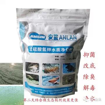 为此,小渔推荐您使用革命性改底产品第五代水质改良剂——安蓝(15%过硫酸氢钾复合物)。