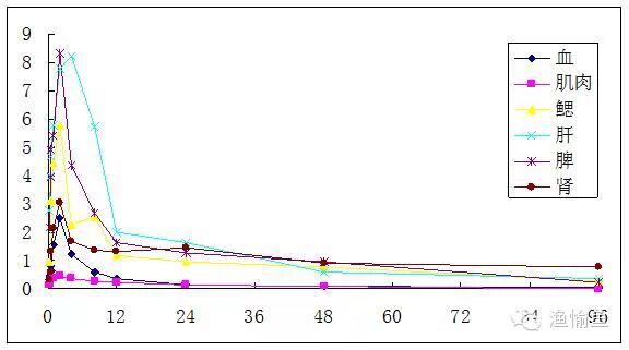 除链球菌外,其他的细菌作用的疾病通过内服,2-4小时内即可达到药物浓度峰值。 【氟甲喹口服后实测药时曲线】