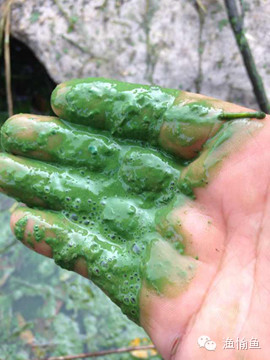蓝藻大量出现时,附近水体一般呈蓝色或绿色,水面被厚厚的蓝绿色湖靛所覆盖,被风吹到岸边堆积,不但会发出恶臭味,且含毒素的蓝藻细胞在水体中漂游,当与某些悬浮物络合沉淀,或被养殖对象捕食后随其排泄物沉淀,在鱼池池底富集,对无公害水产品生产会带来巨大的负面影响。