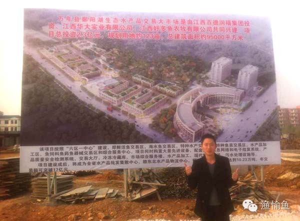 2014年11月16日,受江西万年县鄱阳湖生态水产品交易大市场总经理刘晓明邀请,华中渔愉鱼总经理张全,江西省经理陈强前往万年县考查。张总在刘总带领下兴致勃勃参观了正在兴建的万年水产交易大市场及养殖基地,并于参观过程中一锤定音,达成合作,张总特邀刘总参加无锡会议,刘总欣然接受,并将于会议期间与集团总经理李悦悦鉴定正式加盟合同。这标志着,渔愉鱼连锁全国最大加盟店——万年渔愉鱼销售平台即将出炉。