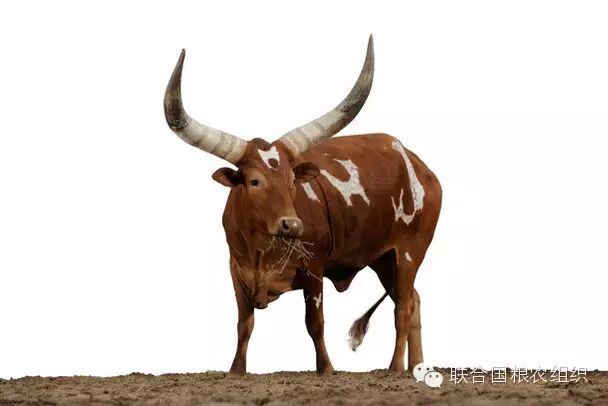 安科莱长角牛来源于非洲,极其耐热,因为它长长的牛角中布满蜂窝状的血管,能帮助身体降温。