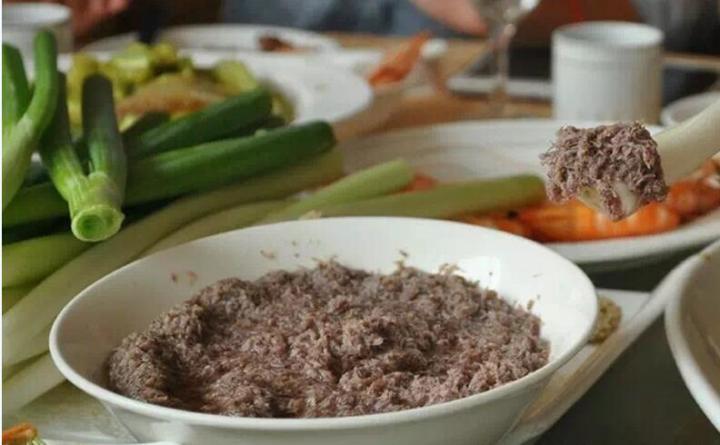 酒店里吃末货,多采用原汁原味,生怕略作加工便失了特色。清水煮开,放入新鲜末货,出锅后配以甜葱。葱也是要嫩的小葱,将葱白掰开,这样便于蘸取。掰开的葱白蘸着末货吃,鲜味降低了葱的辣度,那叫一个爽。除了原汁原味,还可以做汤、炒鸡蛋,口味因人而异。